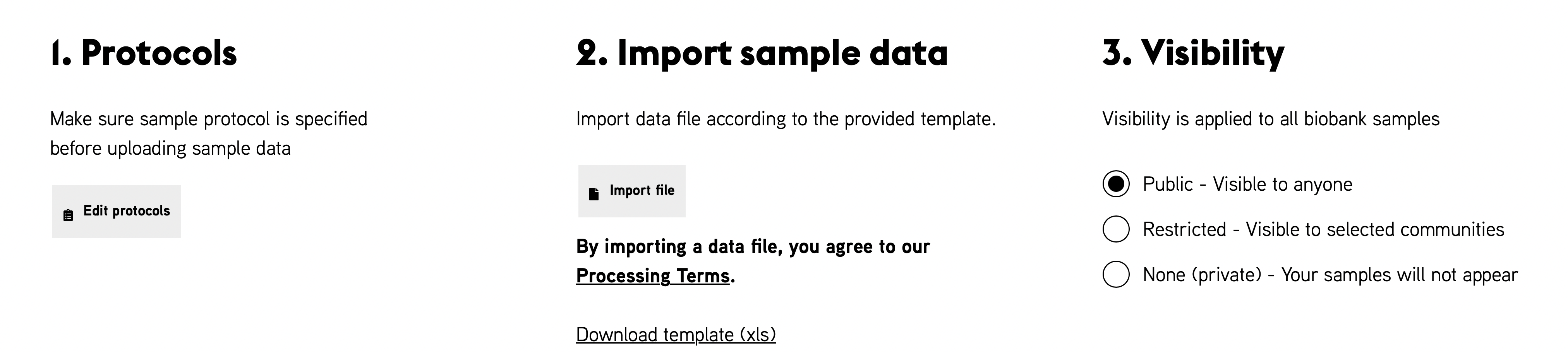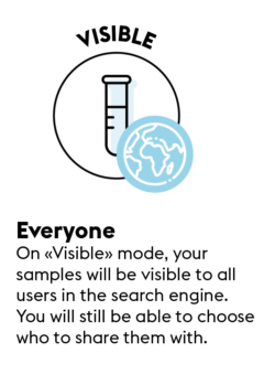 Biobanks that make their data available in the NExT tool have the choice to make the samples publicly visible or to display them in a Community Space.