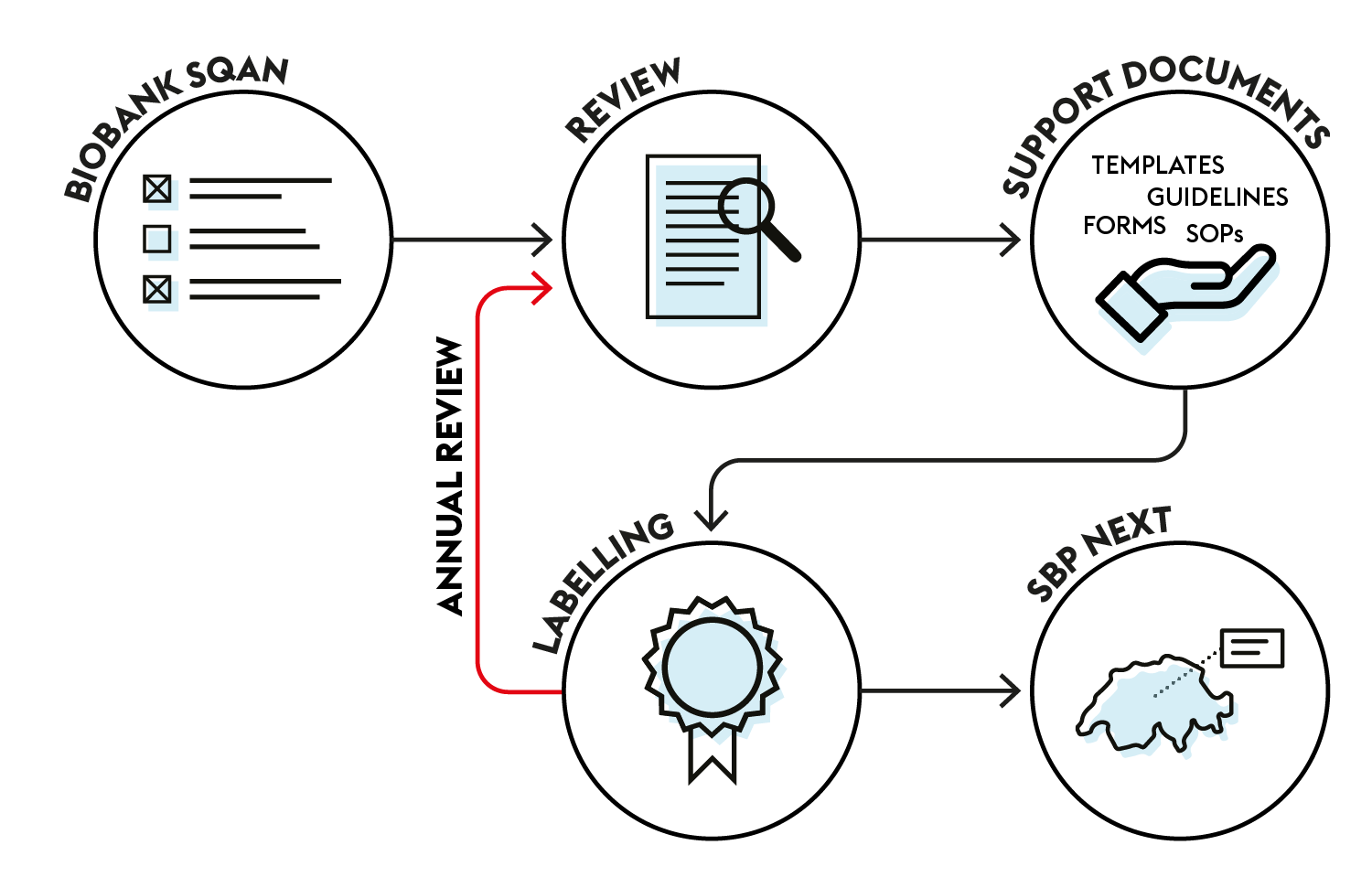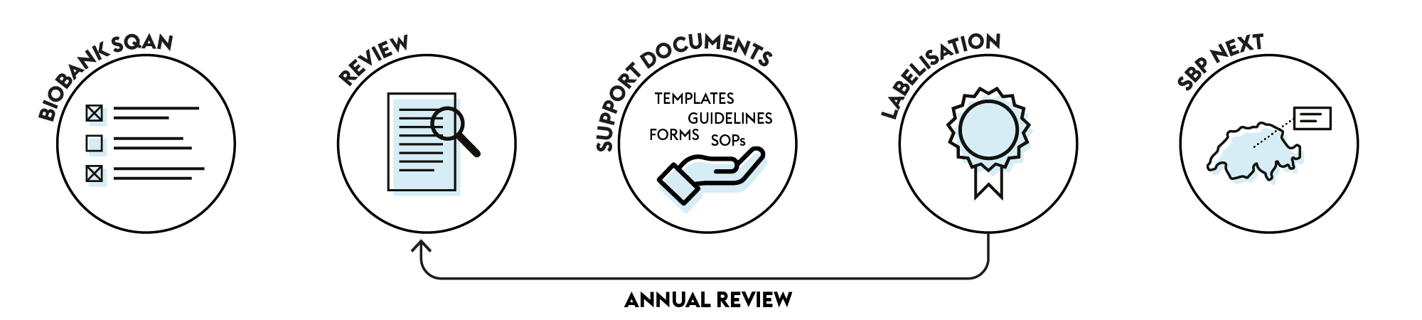 The compliance review is achieved through the Biobank SQAN, our online assessment tool for biobanking practice. After completion of the compliance review, the three labels can be awarded.